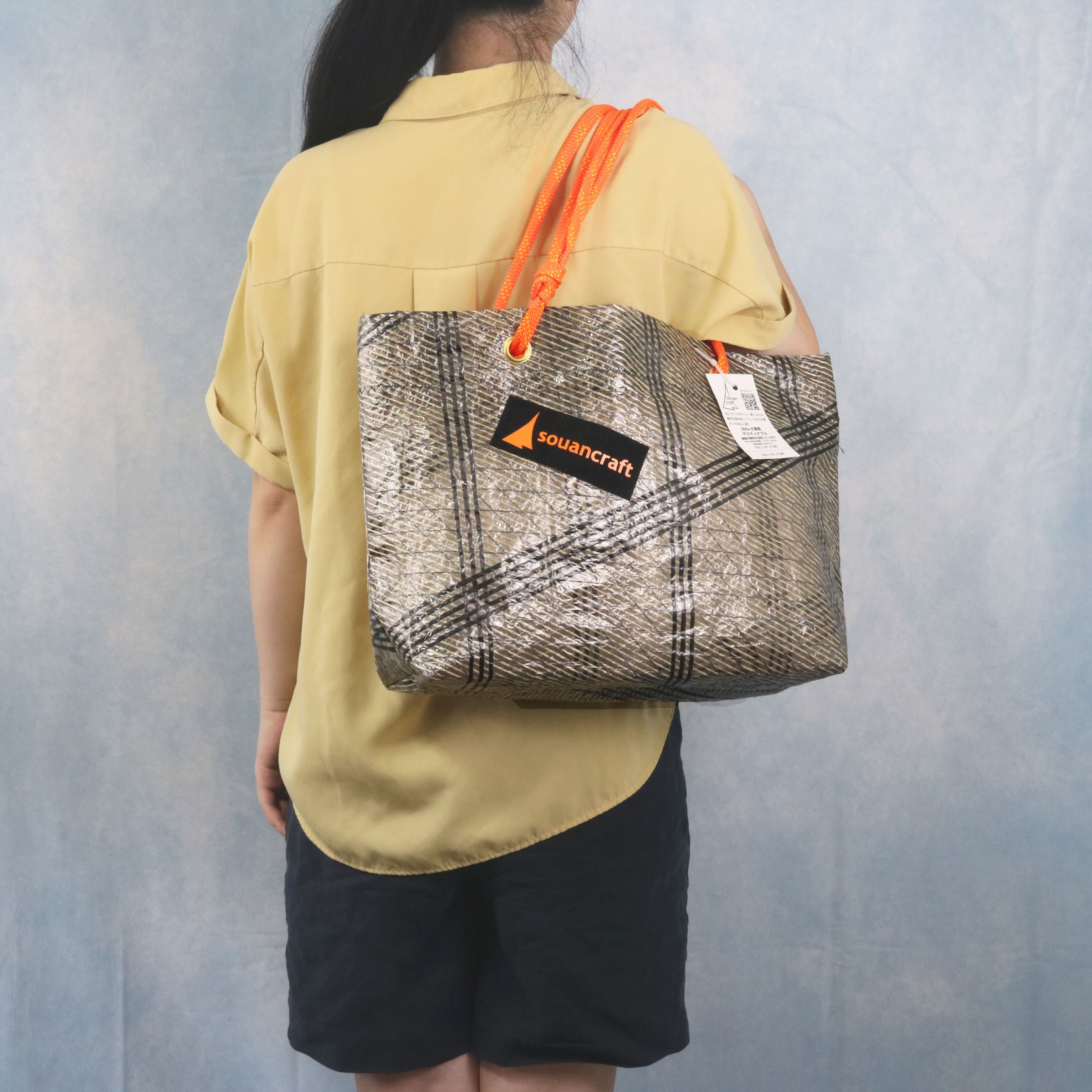 海を旅して、使い終わったヨットのセイルと、セイル製作時に出る新品の端材を組み合わせて作られた、唯一無二のアイテムです。海を旅した素材たちが、新たな命を吹き込まれ、個性豊かなデザインで、また旅をするように仕上げました。