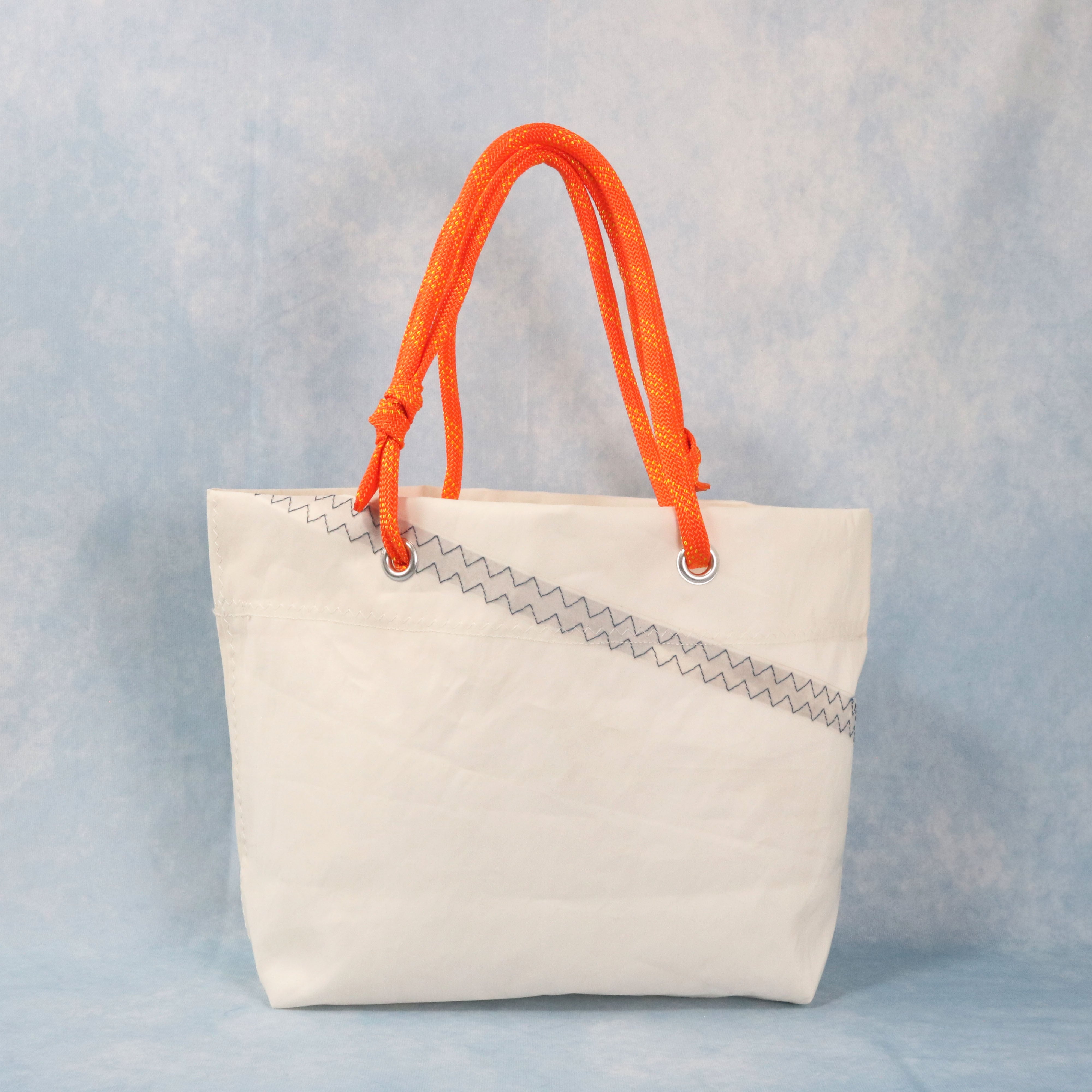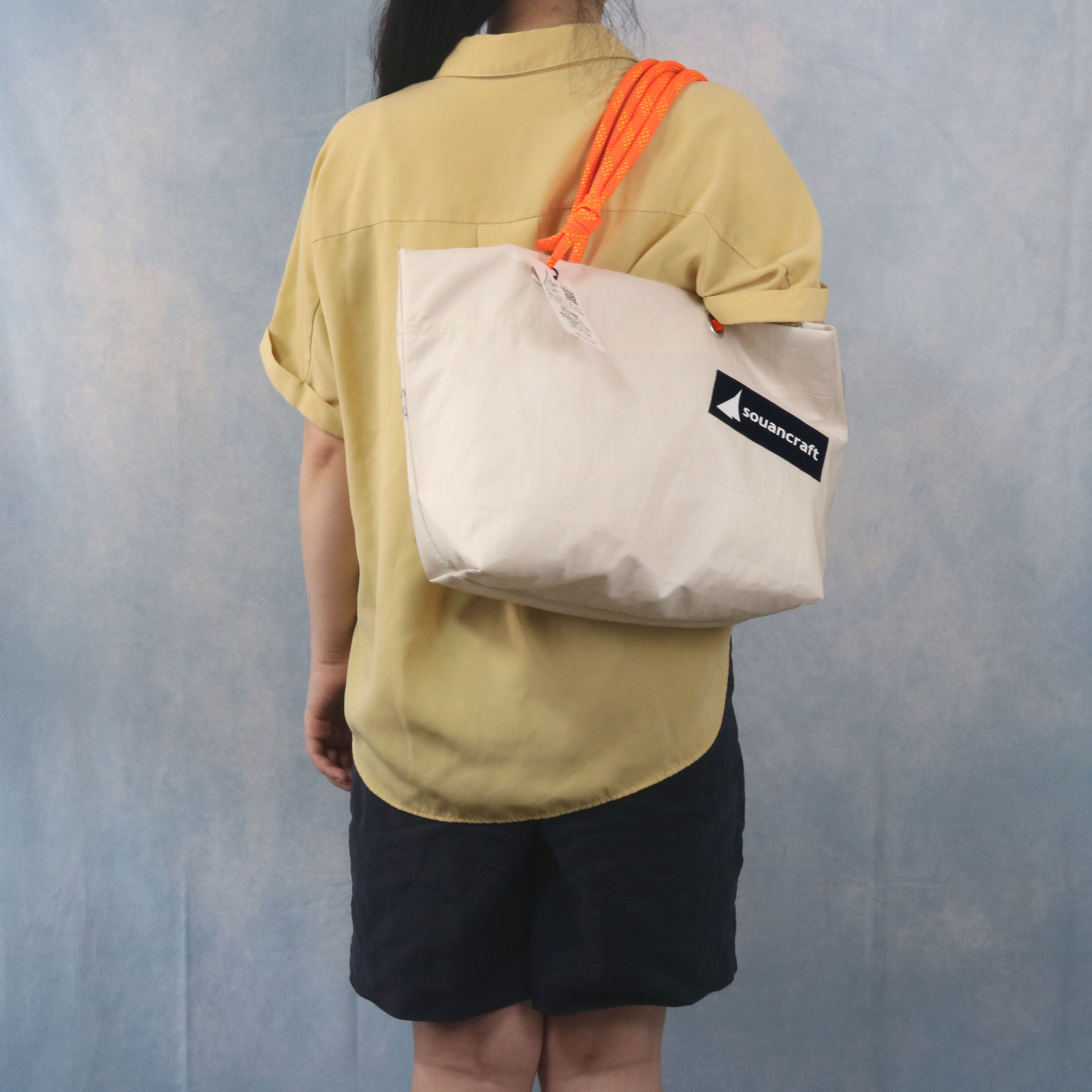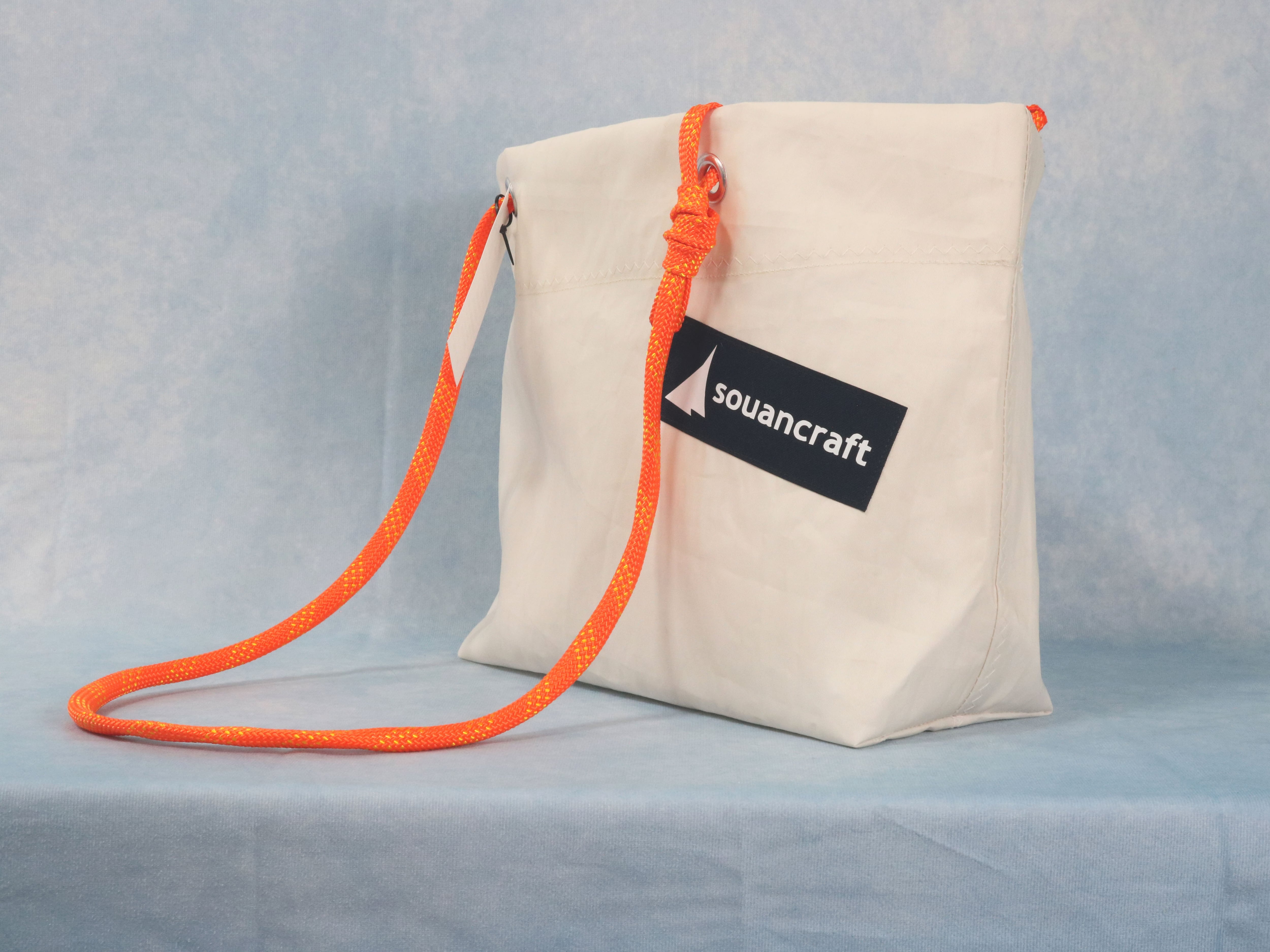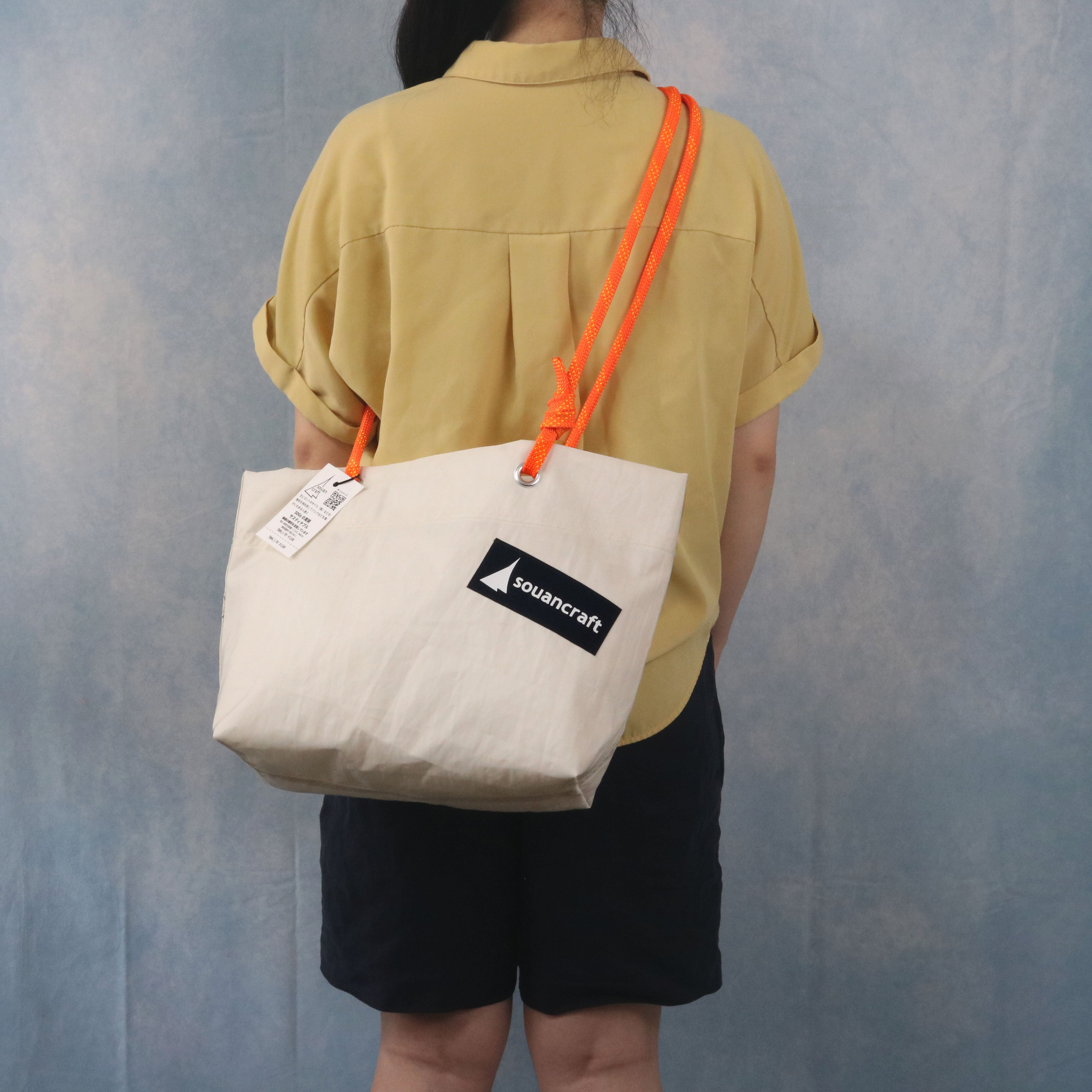 海を旅して、使い終わったヨットのセイルと、セイル製作時に出る新品の端材を組み合わせて作られた、唯一無二のアイテムです。海を旅した素材たちが、新たな命を吹き込まれ、個性豊かなデザインで、また旅をするように仕上げました。