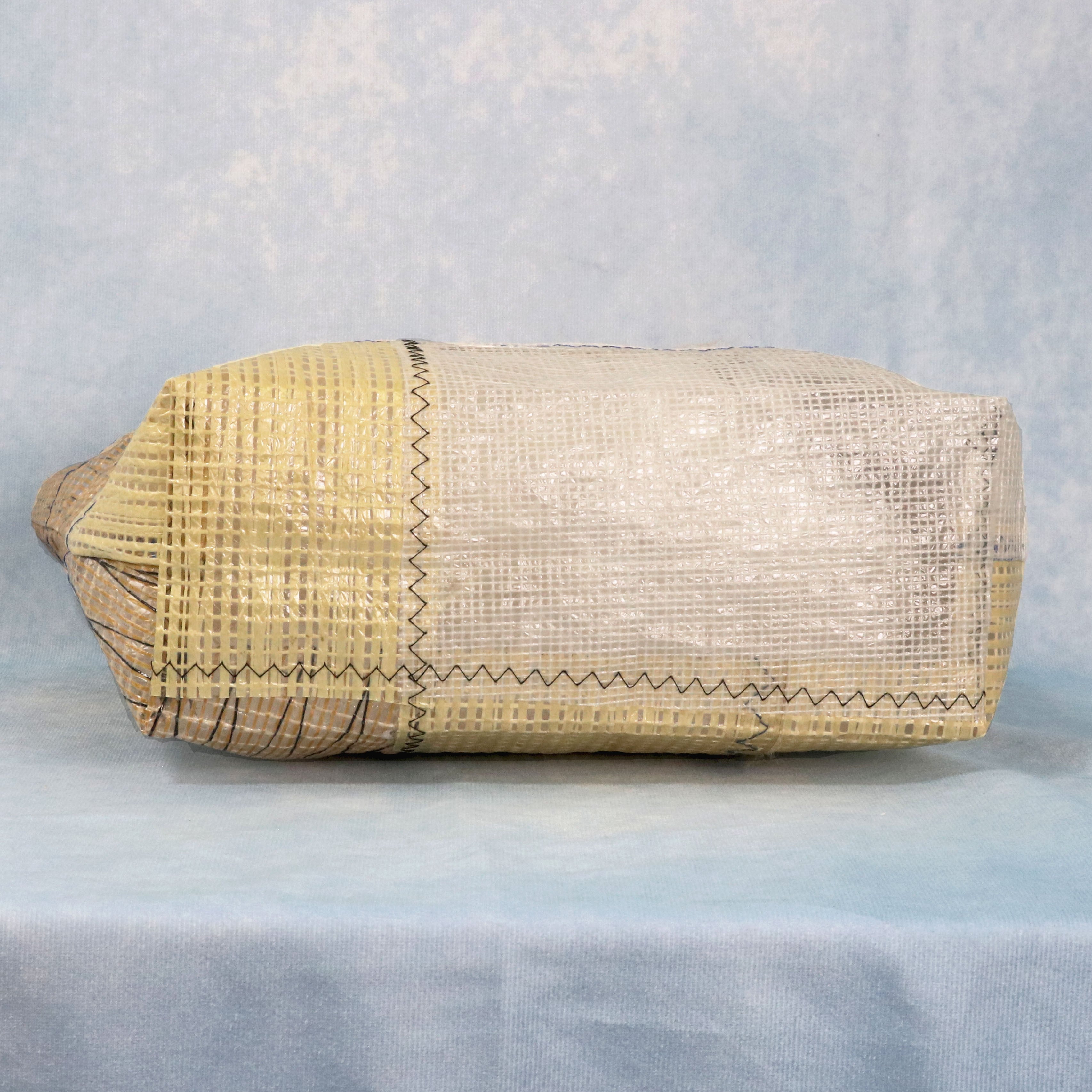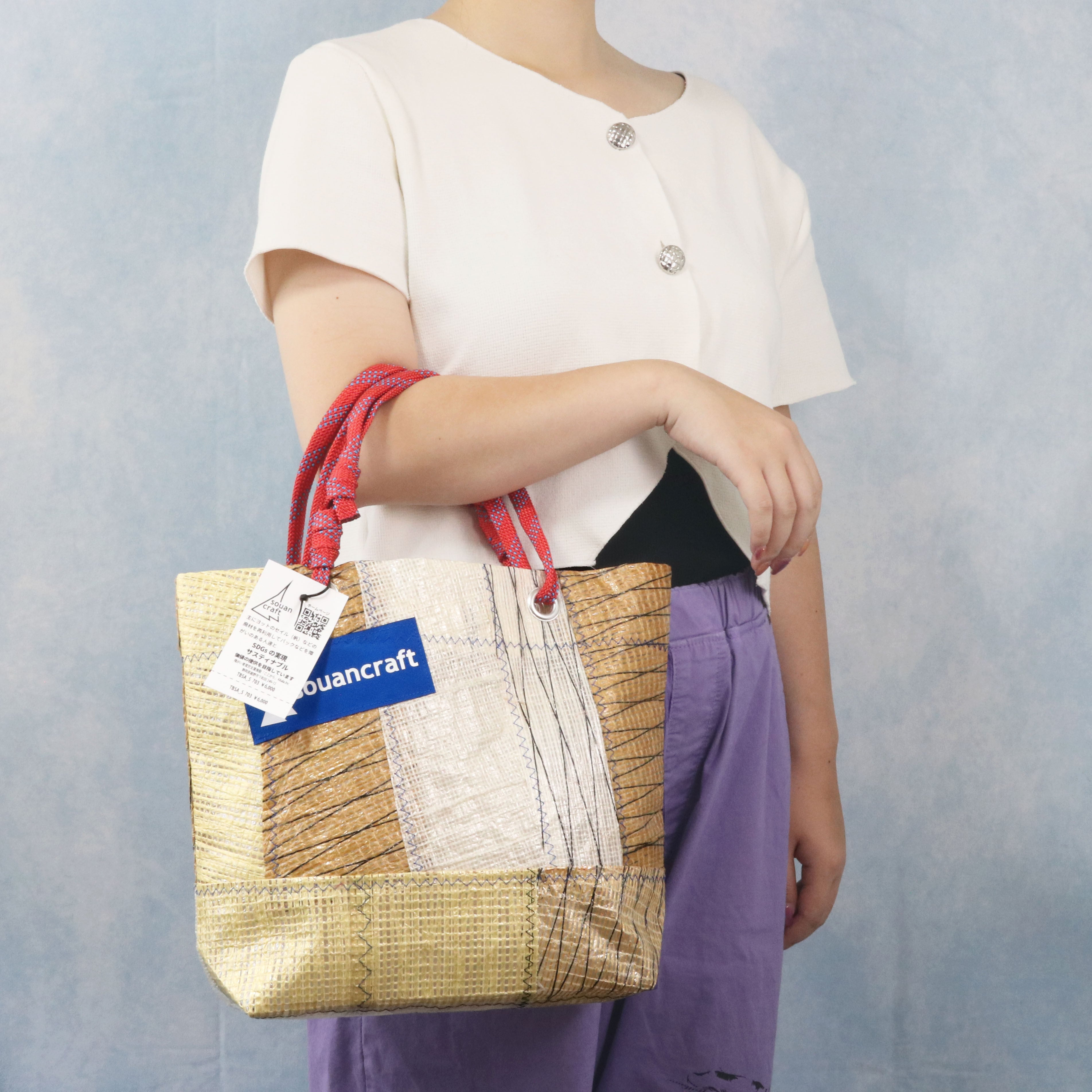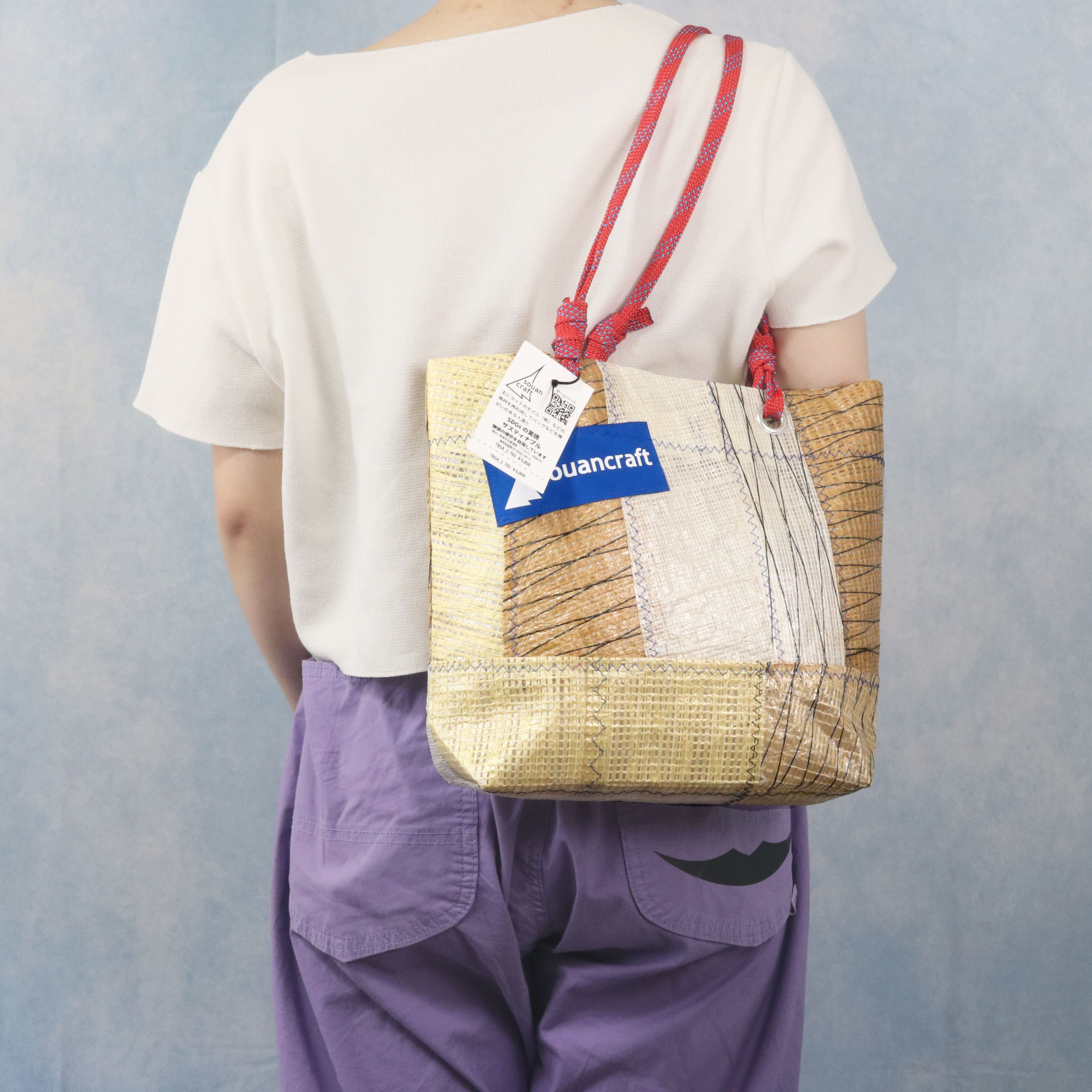 海を旅して、使い終わったヨットのセイルと、セイル製作時に出る新品の端材を組み合わせて作られた、唯一無二のアイテムです。海を旅した素材たちが、新たな命を吹き込まれ、個性豊かなデザインで、また旅をするように仕上げました。