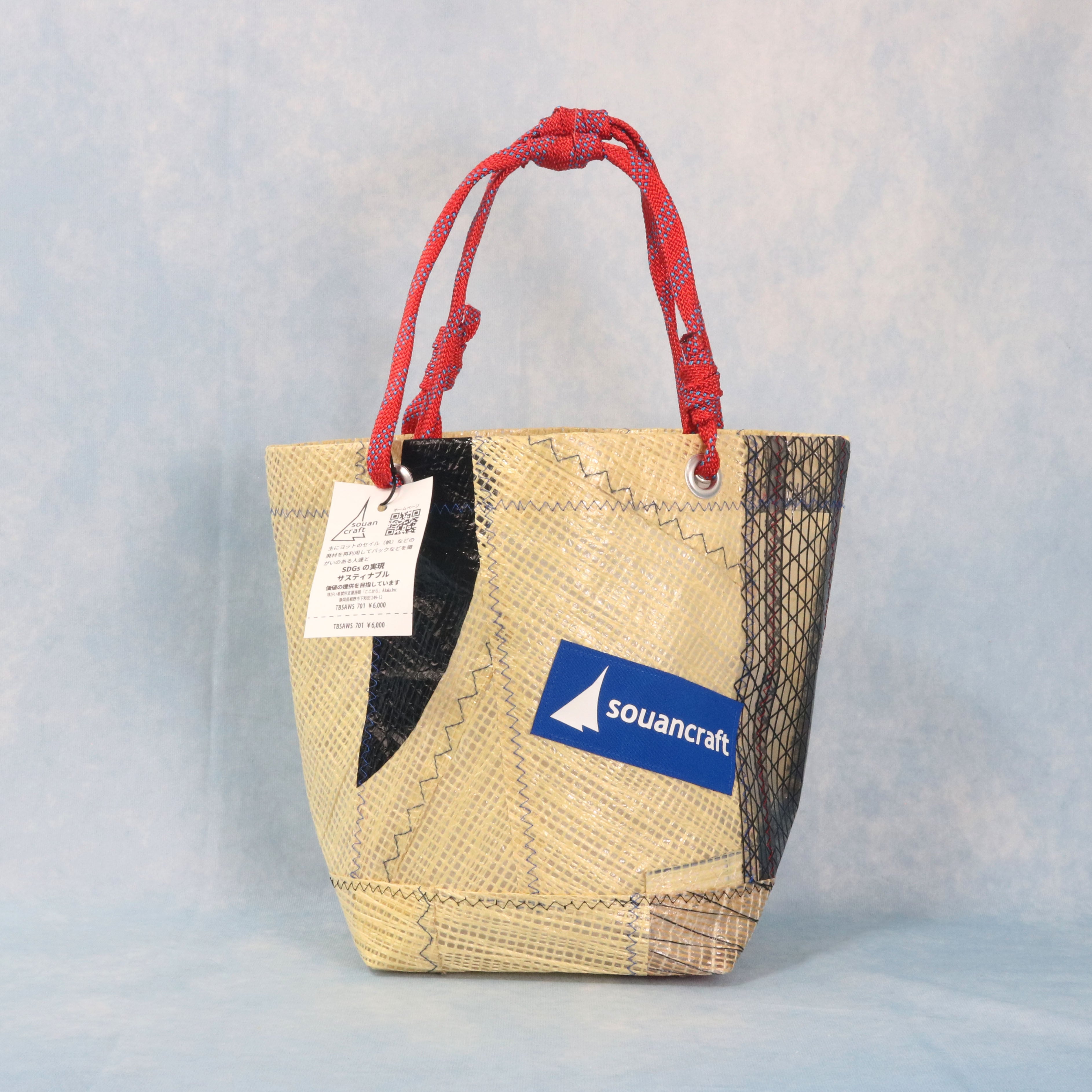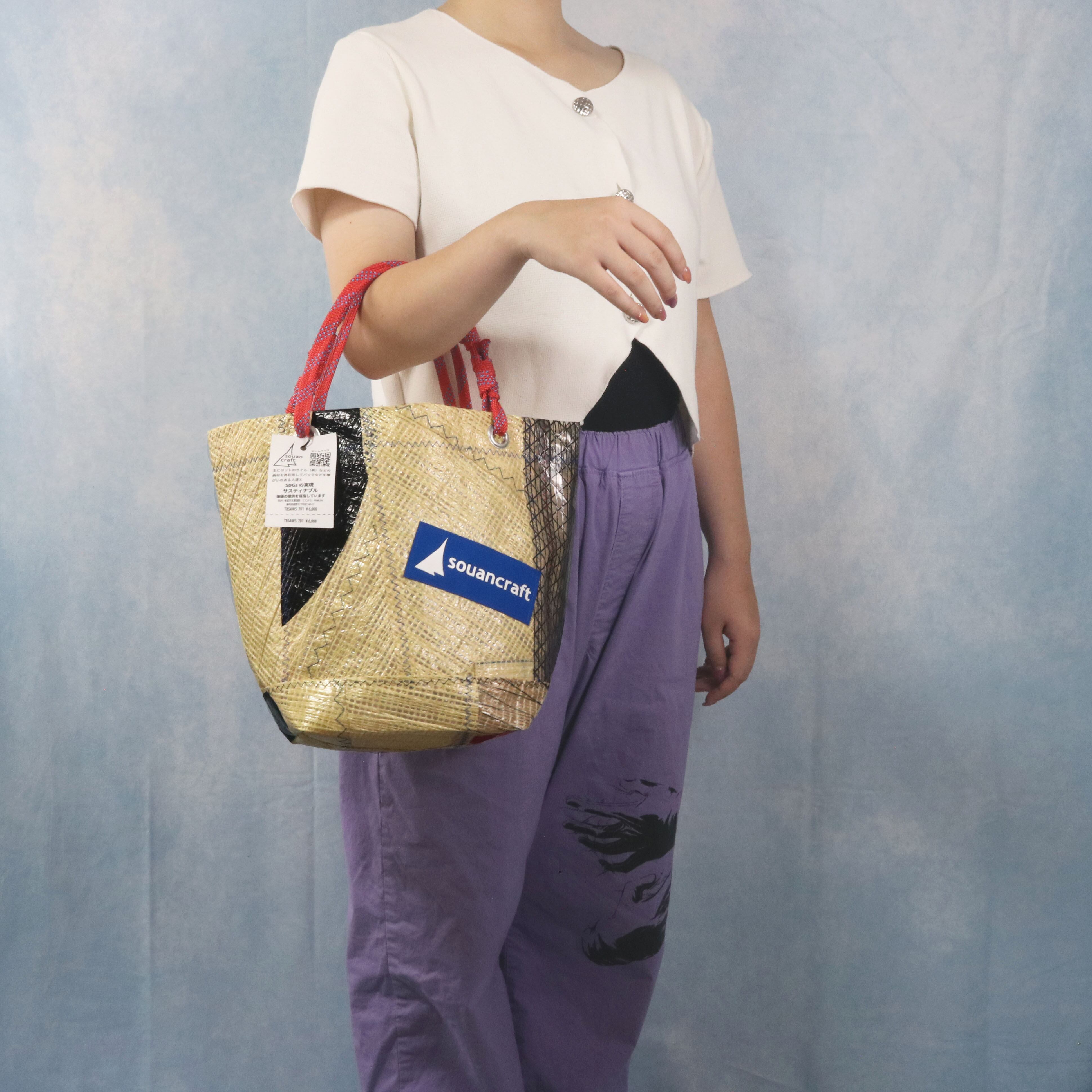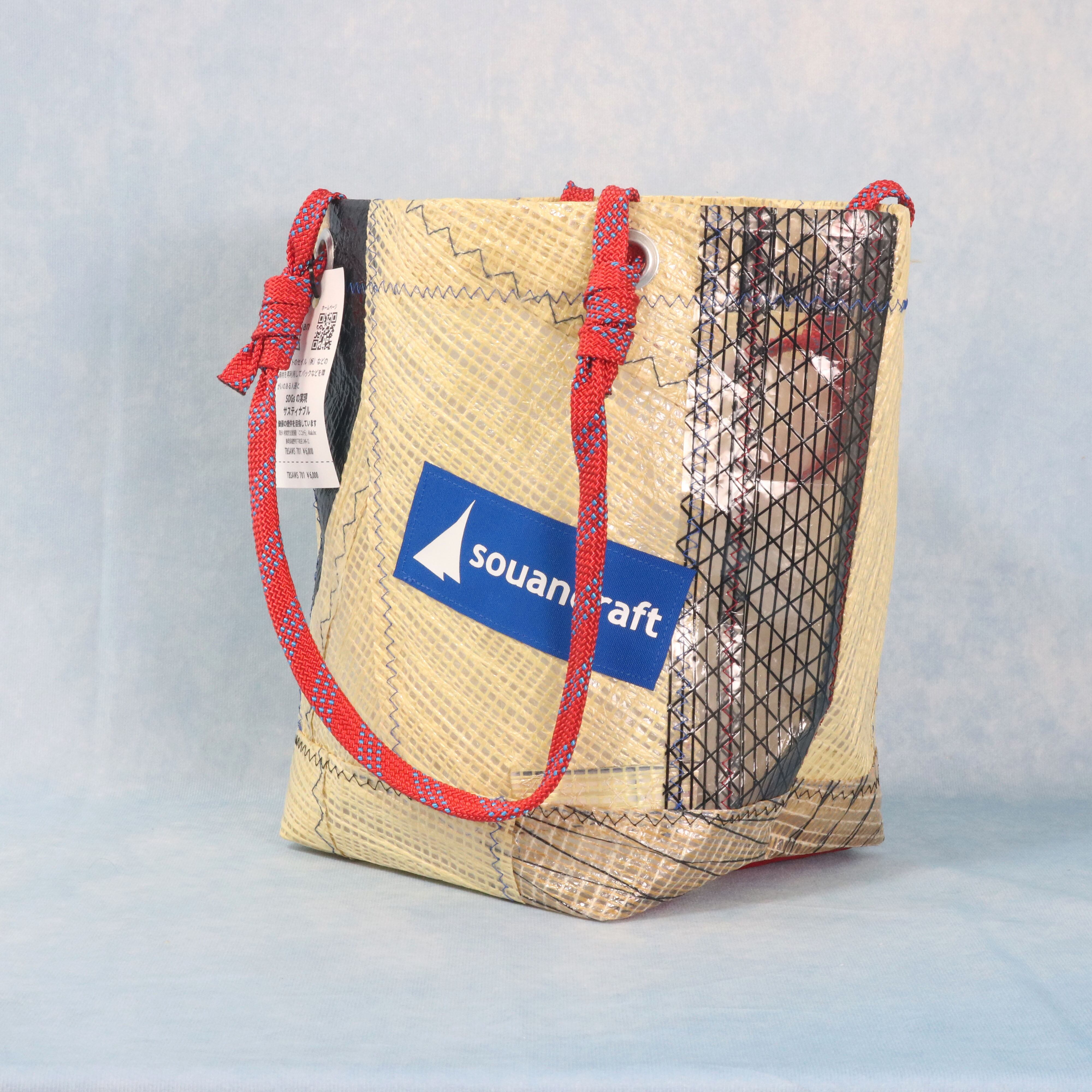 海を旅して、使い終わったヨットのセイルと、セイル製作時に出る新品の端材を組み合わせて作られた、唯一無二のアイテムです。海を旅した素材たちが、新たな命を吹き込まれ、個性豊かなデザインで、また旅をするように仕上げました。