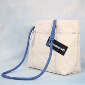 海を旅して、使い終わったヨットのセイルと、セイル製作時に出る新品の端材を組み合わせて作られた、唯一無二のアイテムです。海を旅した素材たちが、新たな命を吹き込まれ、個性豊かなデザインで、また旅をするように仕上げました。