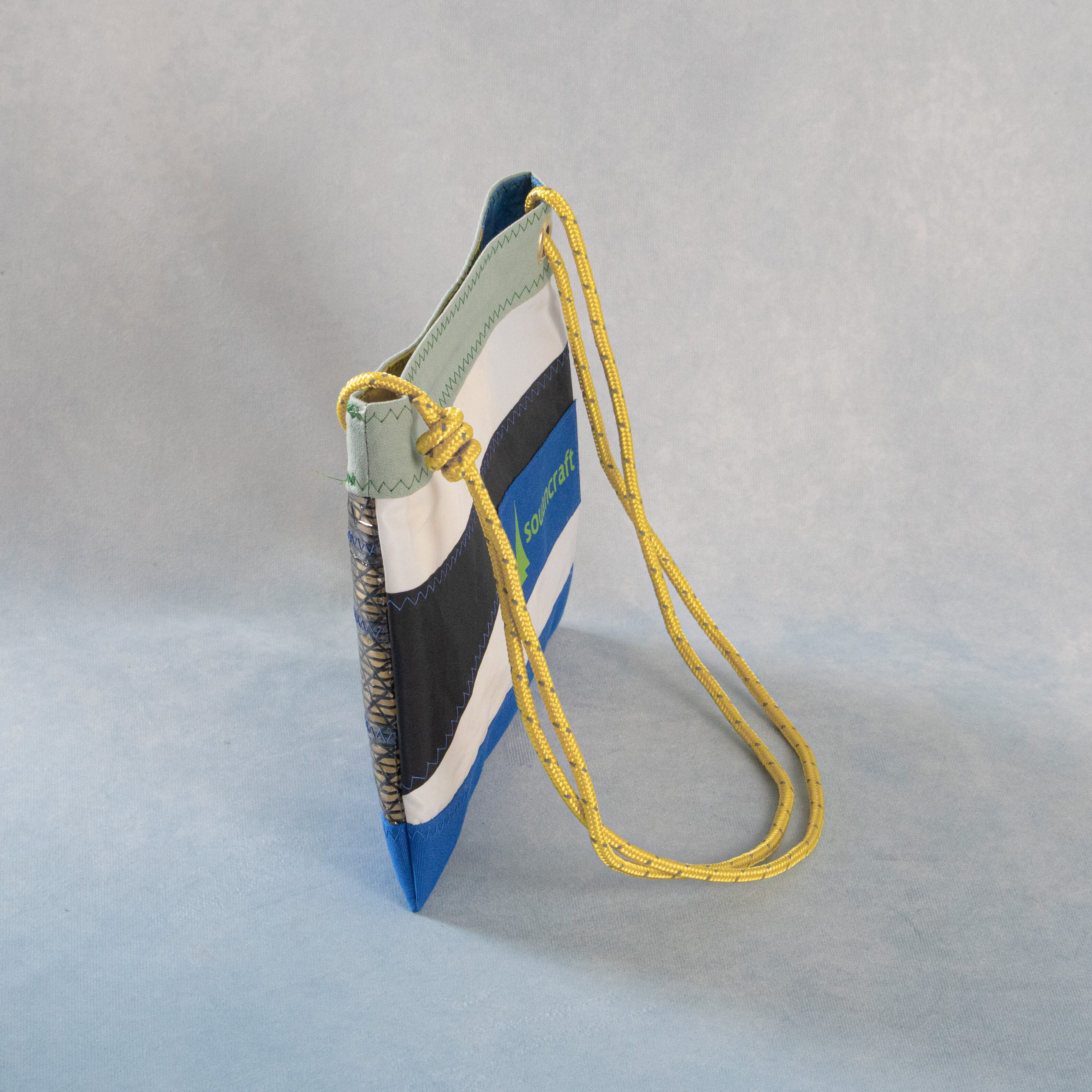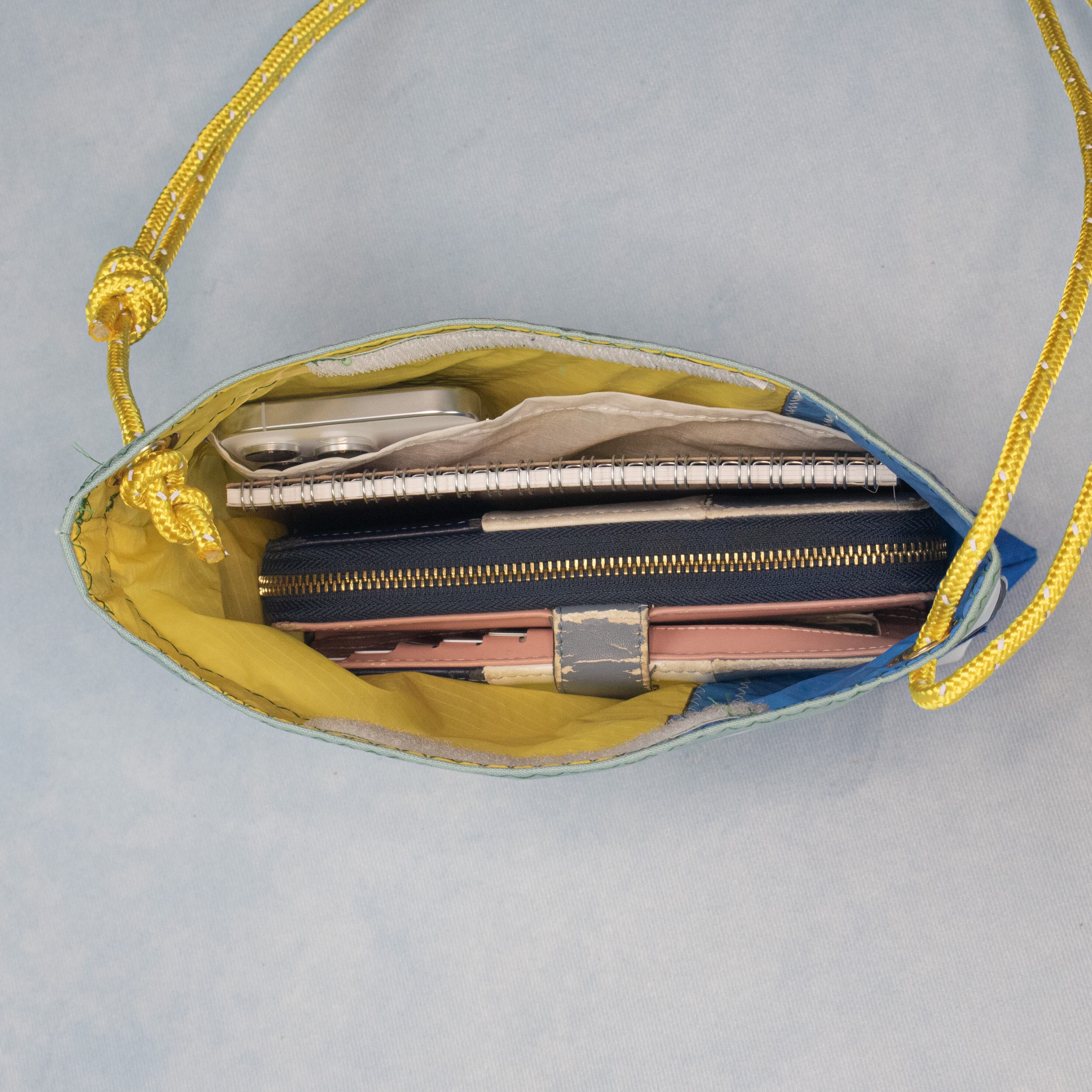 海を旅して、使い終わったヨットのセイルと、セイル製作時に出る新品の端材を組み合わせて作られた、唯一無二のアイテムです。海を旅した素材たちが、新たな命を吹き込まれ、個性豊かなデザインで、また旅をするように仕上げました。