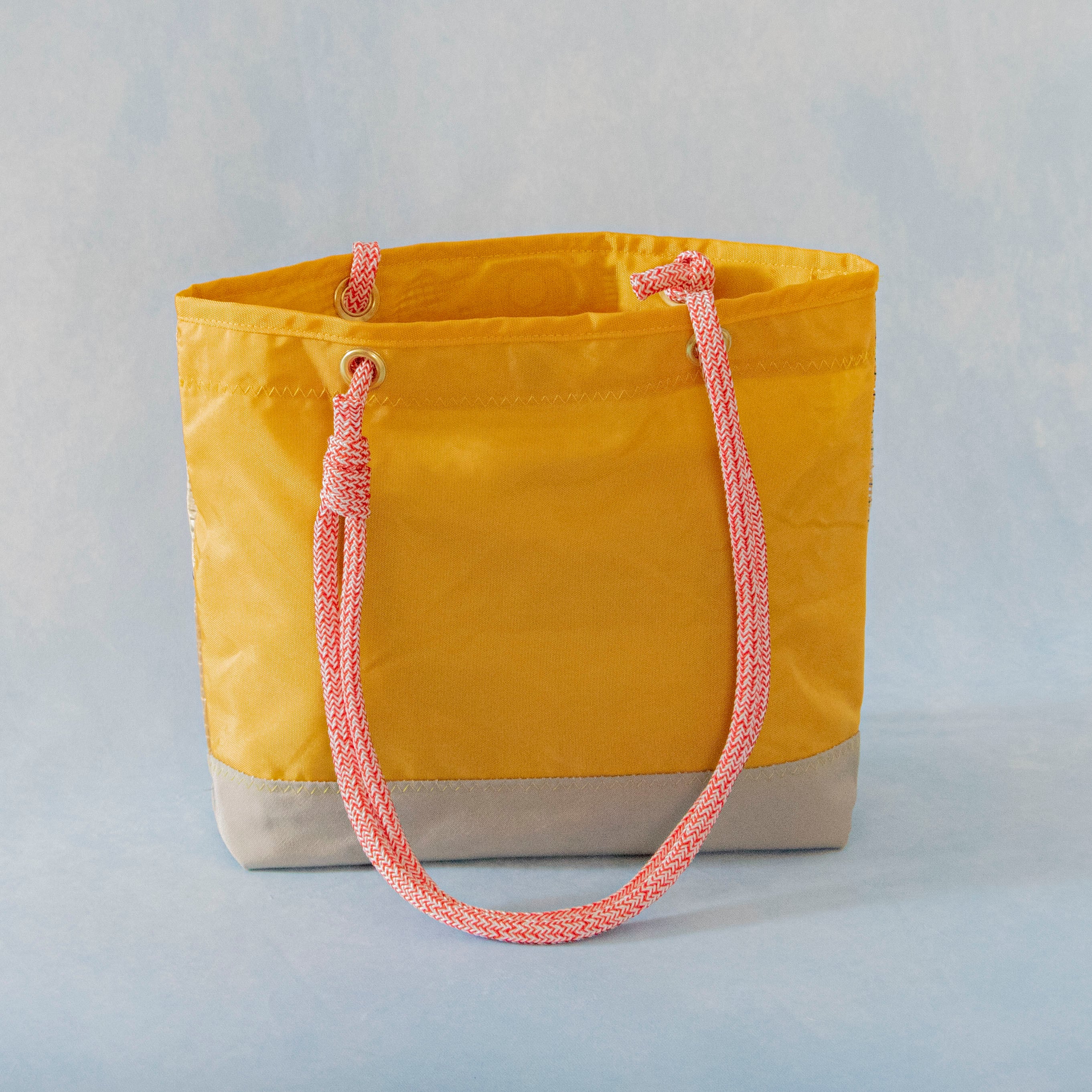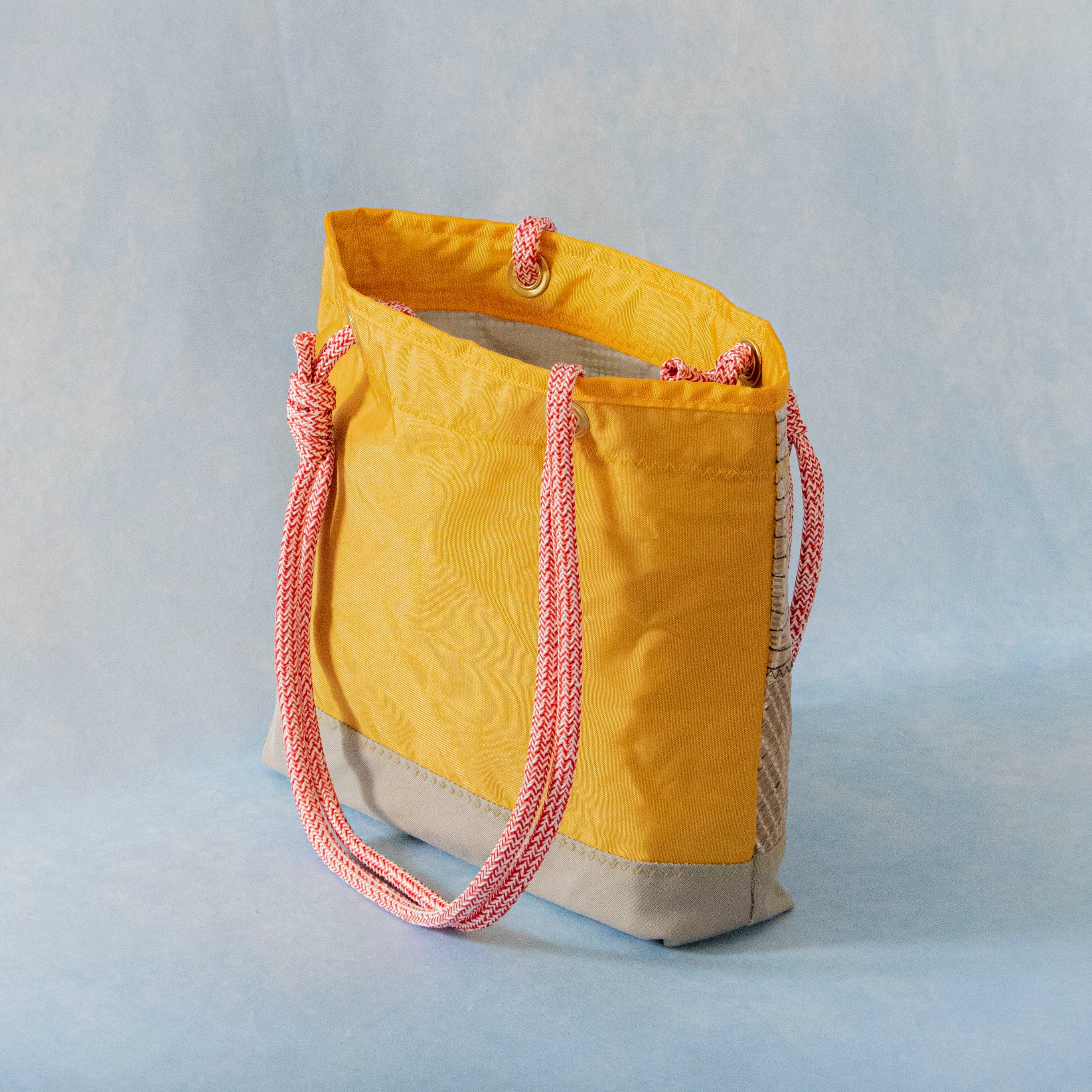 袋口とマチ付きの底の部分には、耐久性と耐候性に優れた「サンブレラ」生地を使用。日常使いにも安心の強度を確保しています。また、使用しているセイル生地は重さを感じない軽さです。組み合わせている生地は軽くて丈夫なカーボン、強靭なケブラー、柔らかなダクロンのセイル。
