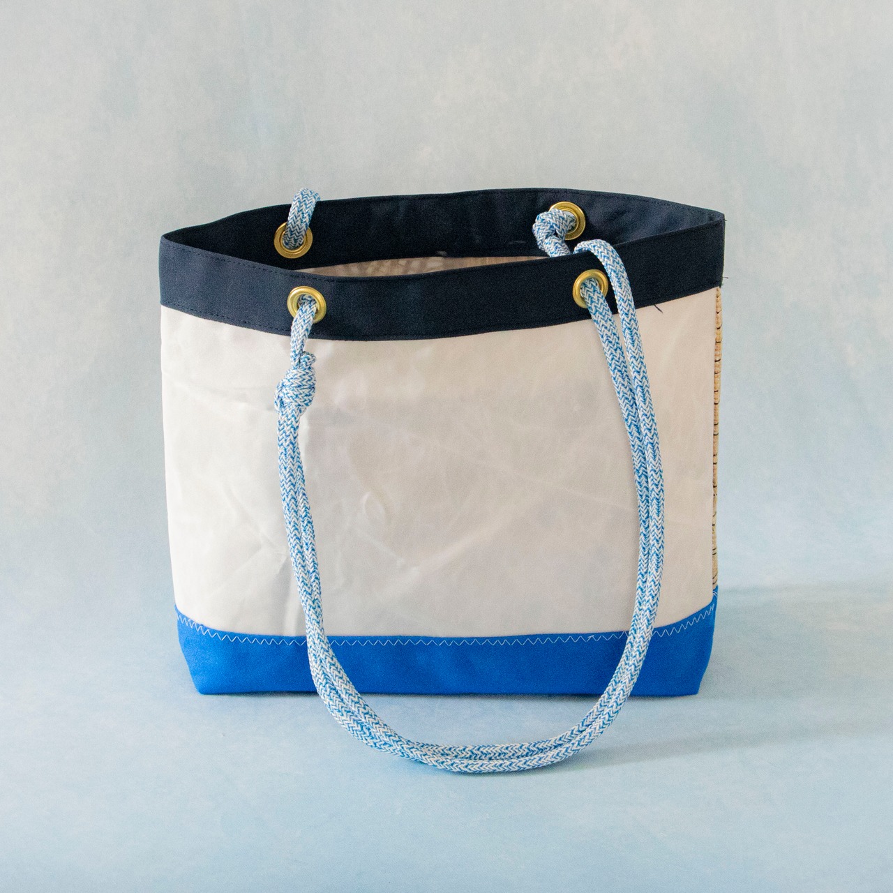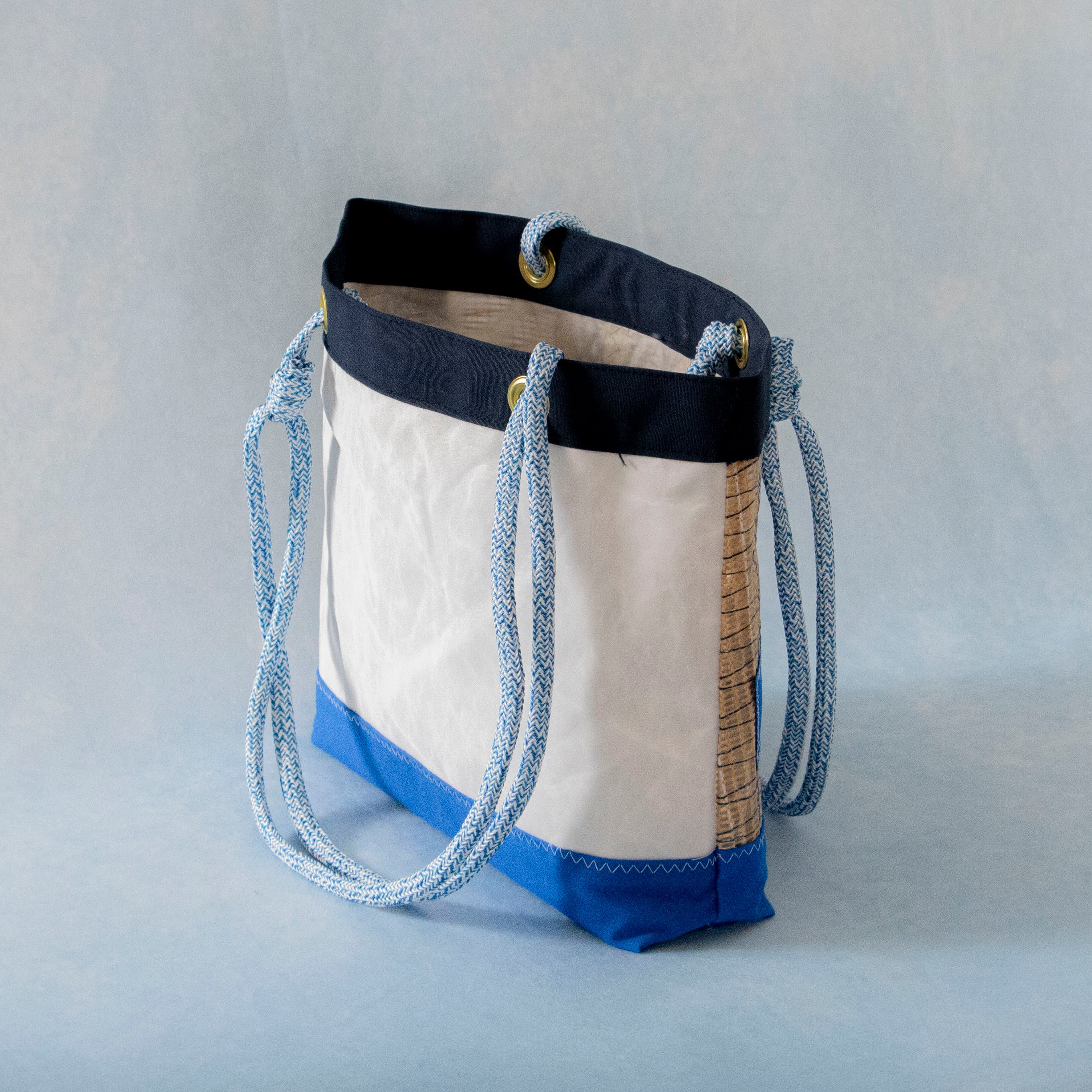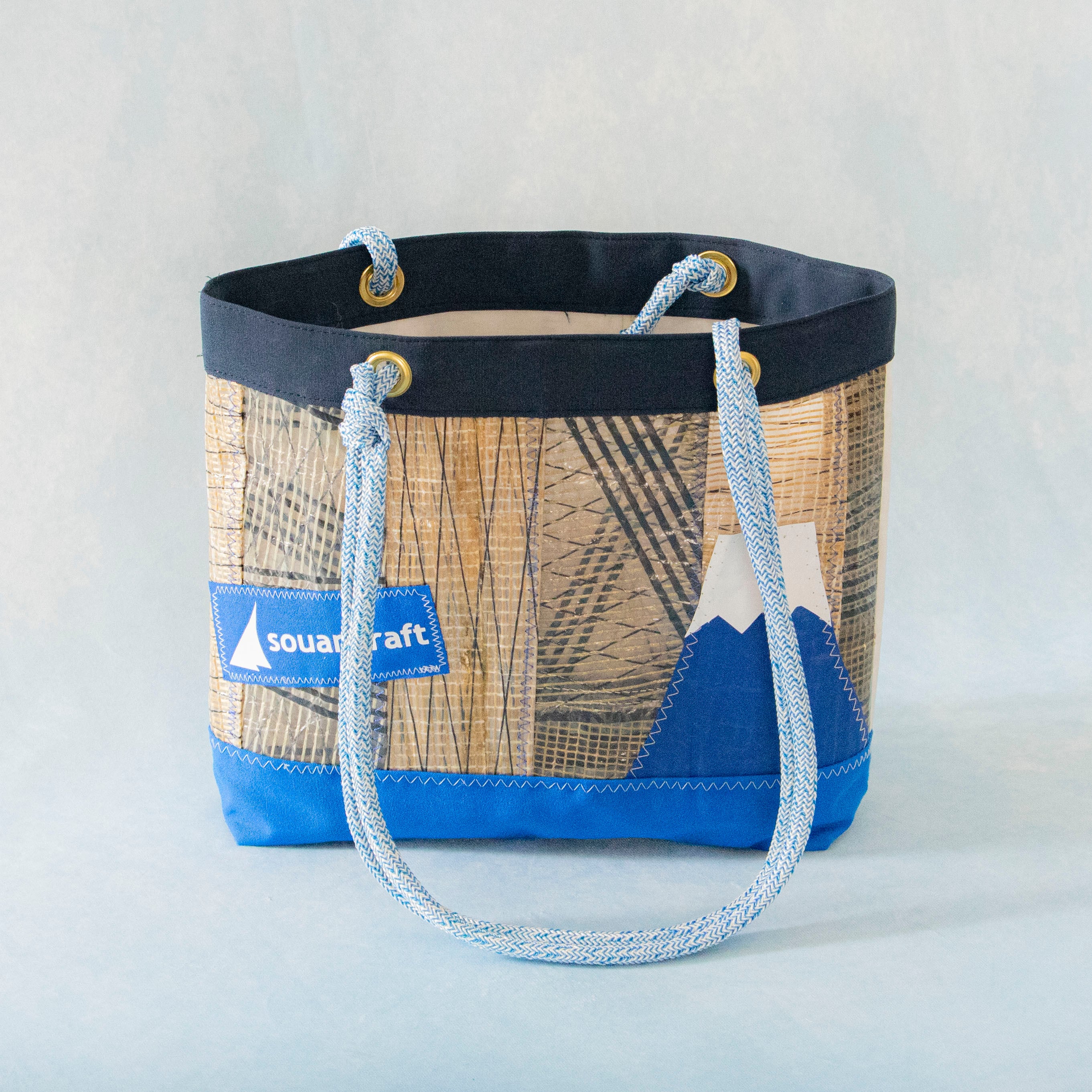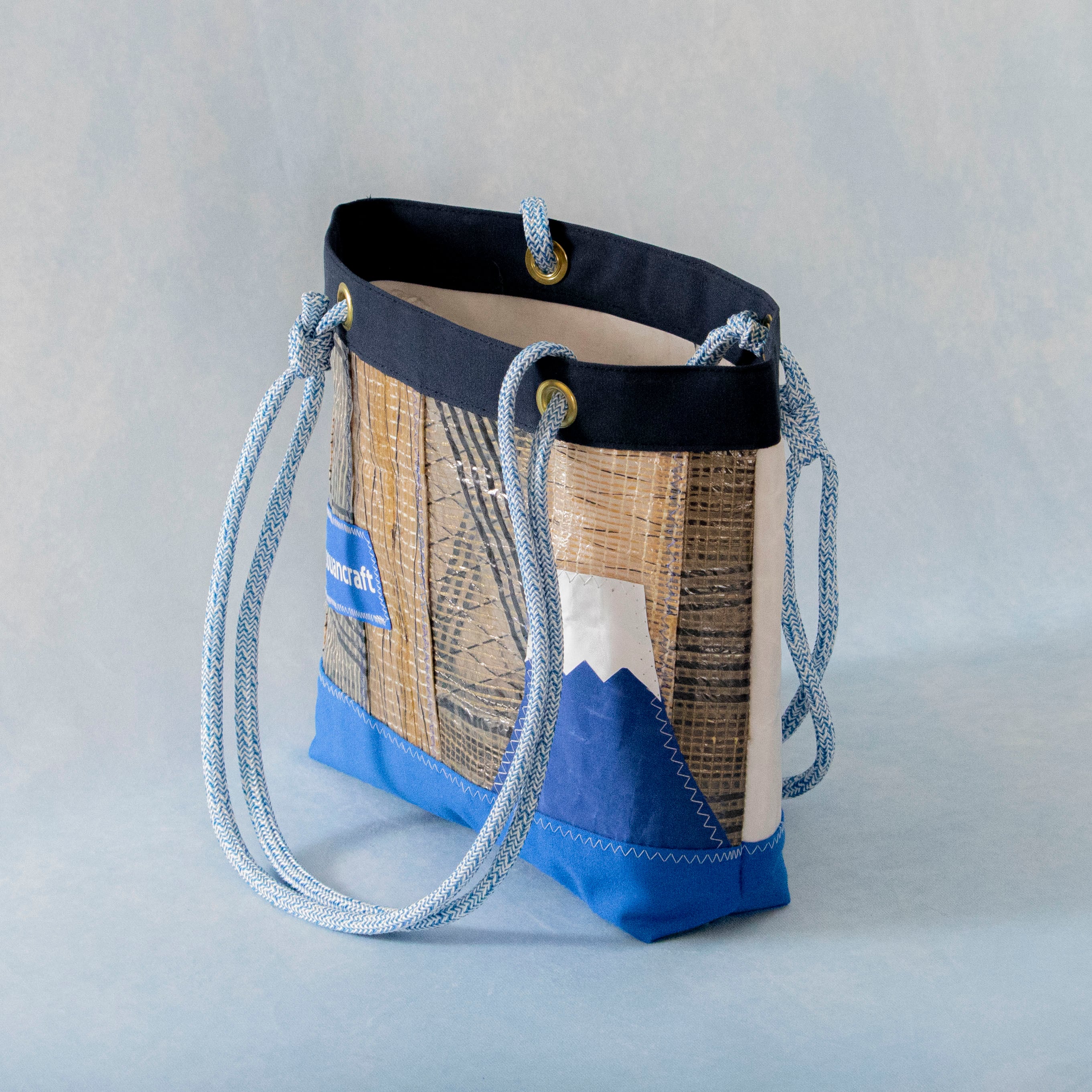海を旅して、使い終わったヨットのセイルと、セイル製作時に出る新品の端材を組み合わせて作られた、唯一無二のアイテムです。海を旅した素材たちが、新たな命を吹き込まれ、個性豊かなデザインで、また旅をするように仕上げました。